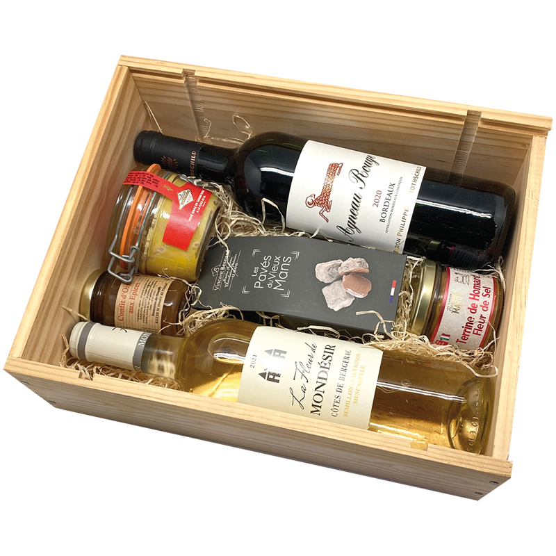 Dans cette caisse en bois gourmande, la Conciergerie du Goût a sélectionné pour vous des produits du terroir français venu de différentes régions:
